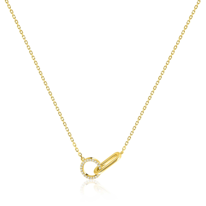 ZINZI goldplated zilveren ketting 45cm met twee verbonden schakels, waarbij de ronde schakel is bezet met witte zirkonia's. De lengte is verstelbaar van 40cm tot 45cm. Vervaardigd van eerste gehalte zilver (925) en extra geel verguld.